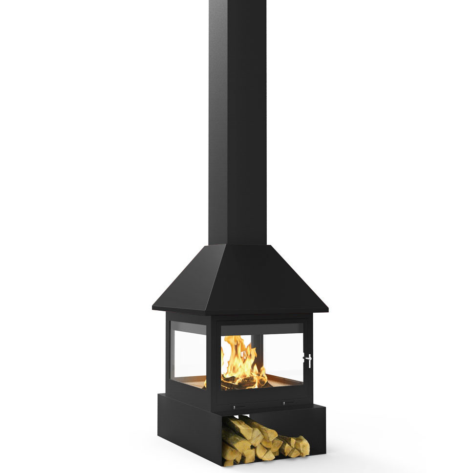 Специальный камин для больших помещений. Двойной кожух, различные варианты основания и система регулировки горения делают его одним из лучших. Цвет - черный.
