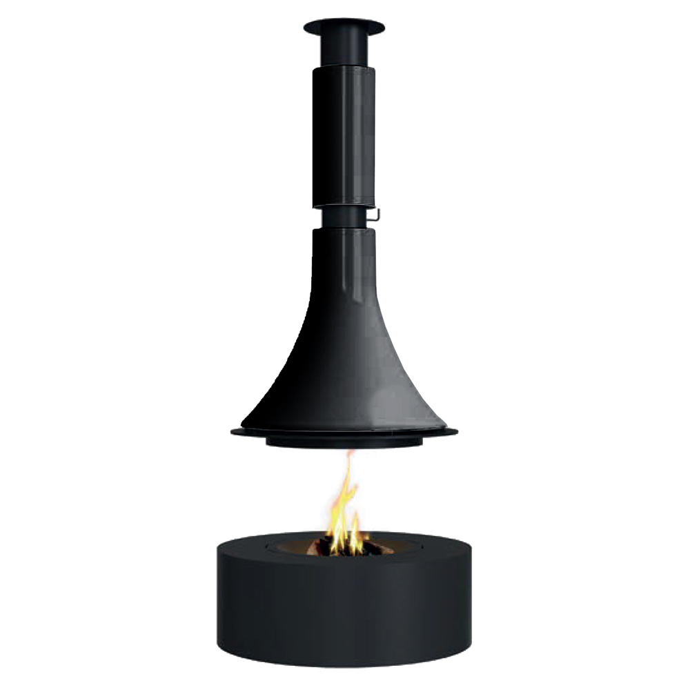 Центральный подвесной круглый камин без стекла, чёрный.
