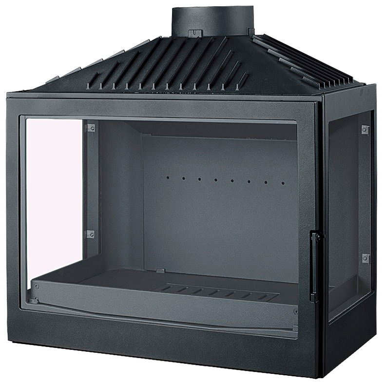 Чугунная каминная топка с шибером. С правым и левым боковыми стеклами. Цвет - черный.